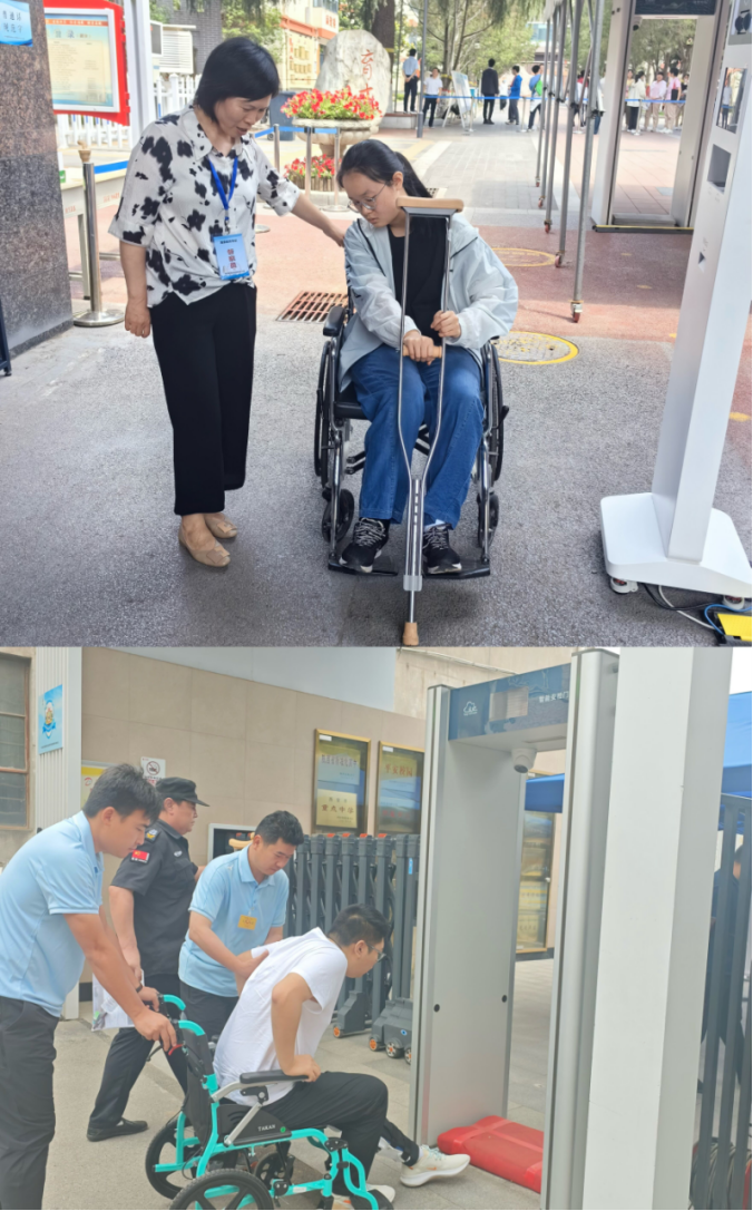 各考点与区教育考试中心密切配合,以考务手册为执行准则,通过“防、检、练、严、爱”做好组考工作:坚决落实试卷流转安全保密工作,严“防”死守,实现全程监控无死角;充分发挥智能安检门和金属探测仪作用,双重“检”查,严防手机带入考场;听力演“练”反复到位,确保播放期间不出问题;考风考纪“严”肃,执考“严”格,实现考试公平公正;志愿服务,关“爱”考生,为残疾考生提供合理便利服务,细节处体现真情,营造温馨考试氛围。