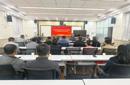 会议由宝鸡市陇县考试管理中心主任孙小强同志主持,会上孙主任组织学习《2024年初中学业水平考试理化生实验操作实施方案》,详细安排考试各个环节工作,强调考试工作纪律。所有涉考人员要提高认识,明确责任,会后严格按照考试工作要求做好各项准备工作,为考生营造安全稳定、公平公正的考试环境,确保顺利完成本次组考工作。