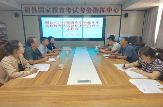 5月22日下午,宝鸡市眉县召开2024年普通高中学业水平合格性考试信息技术科目机考工作会,各高中分管副主考、考务办主任参加会议,会议由宝鸡市眉县考试管理中心主任侯云飞主持。