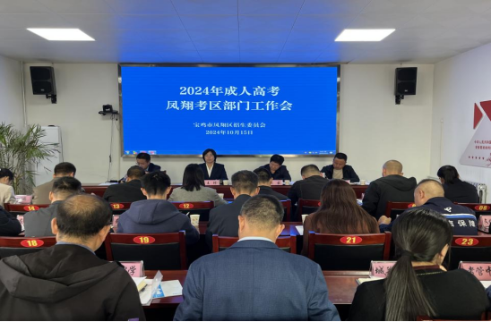 10月15日,宝鸡市凤翔区召开2024年成人高考部门协调会,区政府副区长王珍,招委会各成员单位分管领导、各考点主考参加会议。会议由凤翔区教体局党组书记、局长吴云主持。