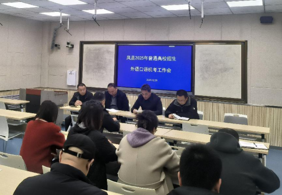 高考外语口语考试是报考外语专业及其他要求外语口试专业考生的一次重要考试,为确保宝鸡市凤县2025年高考外语口语考试顺利进行,凤县考试管理中心于2025年2月28日组织召开全县高考外语口语考试工作会。县考试管理中心工作人员、考点负责人及考务人员参加会议。