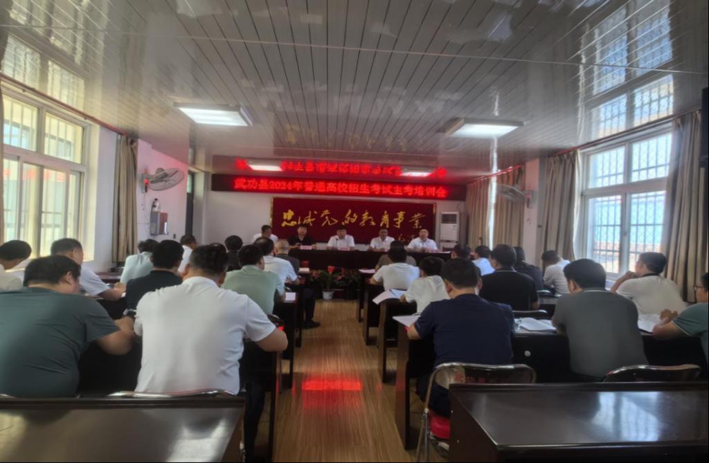 6月5日,咸阳市武功县教育局召开2024年普通高校招生考试主考培训会,局全体领导、各考点主考、副主考和考试管理中心全体人员共计40余人参加会议,会议由副局长韩星主持,局党委书记、局长朱枰虎到会并讲话。