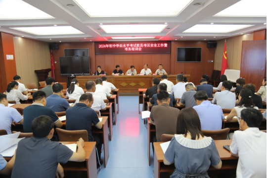 6月18日上午,咸阳市乾县教育局组织召开2024年陕西省初中学业水平考试安全工作暨考务培训会,安排部署乾县初中学业水平考试工作。县教育局领导、县纪委监委驻教育局纪监组、各考点主考、副主考、保密、视频监控、听力播放及考务负责人,各初中、九年制学校校长,抽调监考学校校长及带队领导,县招生办相关人员参加了会议。县教育局党委书记、局长侯佼出席会议并讲话。