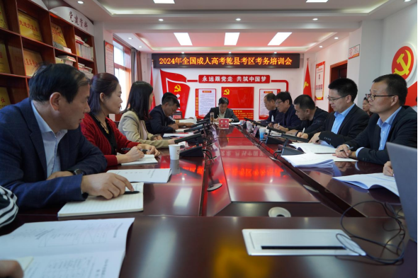 10月14日下午,咸阳市乾县考区在县教育局四楼会议室召开2024年全国成人高考考区考务培训会。会议由县政府教育总督学董昱主持,县教育局相关领导,县纪委监委驻教育局纪监组,各考点主考、副主考、考务负责人、保密负责人和视频监考负责人,花口初中、长义初中校长及监考带队副校长,县招生办相关人员参加会议。县教育局党委书记、局长侯佼出席会议并讲话。