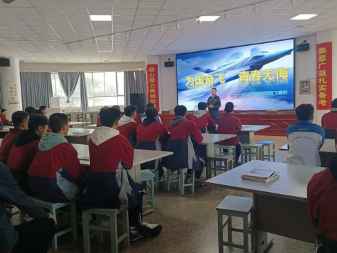 招飞现场气氛热烈,来自空军兰航的专业人员详细地为同学们介绍了航空招飞的相关要求和广阔前景。同学们聚精会神地聆听,眼中闪烁着对蓝天的向往。