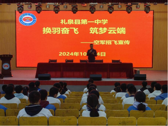 空军招飞工作是军队院校招生工作的重要组成部分,从高中、初中优秀毕业生选拔优秀人才招收飞行学员和青少年航空学校学员,是实现强军梦的重要环节。按照空军招飞局兰州选拔中心和市考试管理中心统一安排,10月24日,空军招飞局兰州选拔中心2名工作人员一行来到咸阳市礼泉县,走进礼泉一中、礼泉二中两所高中和礼泉英才初中、礼泉实验初中两所初中,对有意愿报考空军航空大学和空军青航校的高中初中毕业生“面对面”进行了2025年度空军招飞政策宣讲与初选工作。