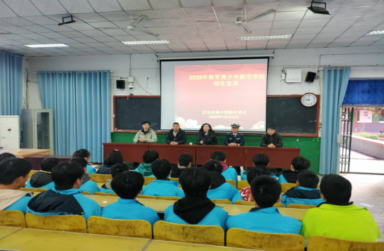 宣讲会上,海军工作人员不仅详细介绍了这些选拔标准,还深入讲解了海军青少年航校的培养模式与优势。航校采用军事化管理与优质教学相结合的方式,为学生们量身定制了全面的培养计划。在逸夫初中的宣讲现场多媒体的屏幕上,海军战机如利箭般划破苍穹,航空母舰在浩渺大洋上破浪前行,精彩的画面让台下的同学们目不转睛,眼中满是对未来的憧憬与向往。此次招飞宣讲活动面向众多初三学生,为他们开启了一扇通往海天的梦想之门。