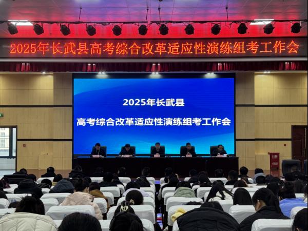逐梦远方迎旭日,开元新纪启鹏程。2025年我省是第五批新高考改革落地的省份,为确保新高考平稳落地,1月2日咸阳市长武县召开了2025年高考综合改革适应性演练组考工作会议。会议在长武县中学实验楼七楼报告厅召开,考区副主任,县国家教育考试工作领导小组相关成员单位负责同志,全体涉考工作人员近300人参加了会议。会议由教育局党委委员、副局长李建斌主持,会议分两部分进行,第一部分为高考综合改革适应性演练组考工作会,第二部分为考务工作培训会。