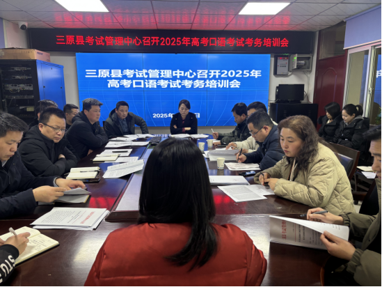 2025年陕西省高考外语口试机考考试定于3月1日举行,三原县考试管理中心将以此次培训会为契机,进一步强化考务管理,优化服务保障,全力以赴为考生创造良好的考试环境,确保高考外语口试机考考试工作圆满完成。
