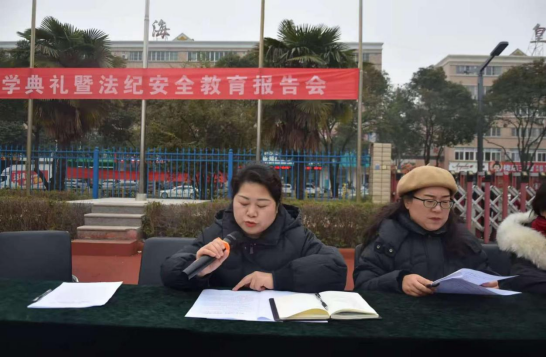 伴随着嘹亮的国歌声,该校开学典礼暨法治安全报告会拉开了序幕。首先,副校长朱佳总结了上学期工作,安排部署了本学期工作。副校长丁刚刚宣读表彰决定及获奖师生名单。学校对上学期的省市级教育教学获奖者、校级优秀执教者、优秀信息工作者等88人和245名社团活动优秀学生共计333人次进行了表彰奖励。教师代表耿苗苗和学生代表张海钰分别进行发言。
