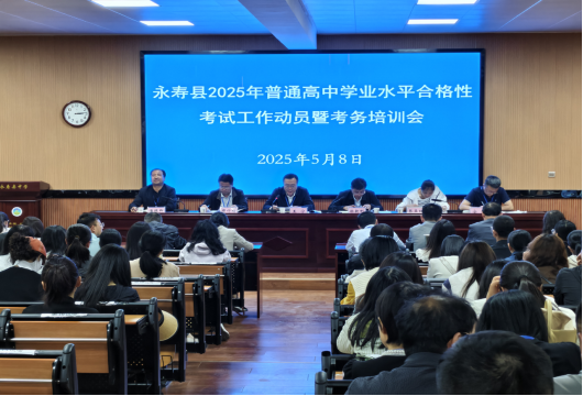 为确保普通高中学业水平合格性考试平稳有序开展,5月8日下午,咸阳市永寿县2025年普通高中学业水平合格性考试工作动员暨考务培训会在永寿县中学召开,县政府副县长王宁出席会议并讲话。市考试管理中心督查张亚红同志、县教育局分管领导、考点主考副主考、县教育考试中心全体干部及考务工作人员共150余人参会。
