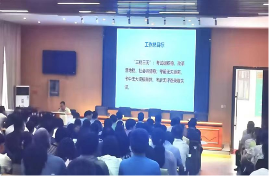 考前召开分岗分类分层培训会。明确各岗位人员职责、纪律及注意事项,培训涵盖监考、考务、保密等关键岗位,重点强化试题安全管理与考试纪律教育,严格落实“五位一体”手机作弊防范机制。各考点细化应急预案,压实岗位职责,以严谨细致的工作态度,全力护航“平安新高考”目标实现。