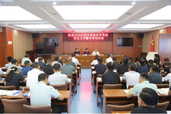 6月18日下午,咸阳市乾县教育局组织召开2025年陕西省初中学业水平考试安全工作暨考务培训会,安排部署我县初中学业水平考试工作。县教育局领导、县纪委监委驻教育局纪监组、各考点主考、副主考、保密、视频监控、听力播放及考务负责人,各初中、九年制学校校长,城内9所抽调监考学校校长及带队领导,县招生办相关人员参加了会议。县教育局党委书记、局长侯佼出席会议并讲话。