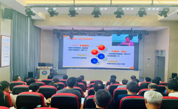 省教育考试院高考处王亚洲老师对2025年新高考政策解读。西安文理学院招生就业处副处长雷锋作了《新高考背景下志愿填报政策解析及注意事项》的专题讲座,参会人员认真聆听两位老师的讲座,受益匪浅。高三级任课教师、考生及家长都能够熟悉我省今年高考志愿填报流程和投档录取的办法,为考生科学合理填报高考志愿打下了坚实的基础。