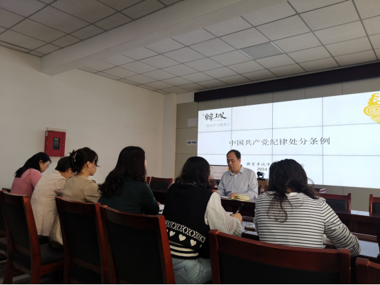 为扎实推动党纪学习教育走深走实,进一步学懂弄通新修订的《中国共产党纪律处分条例》,按照市教育局党规党纪学习教育工作部署,渭南市韩城市教育考试中心举办了党纪学习教育专题学习会,中心全体人员参加专题学习。