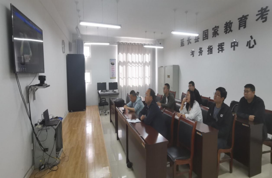 为做好高考信息技术保障工作,确保考试顺利实施,5月15日上午,延安市延长县考试管理中心主任张东彬、高考考点技术保障人员、外语听力播放工作人员等在县高级中学敏行楼二楼平台会议室参加了由陕西省教育考试院组织的高考信息技术保障培训视频会。