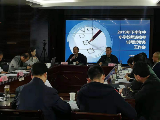 10月18日,汉中市考试管理中心组织召开2019年下半年中小学教师资格考试笔试考务工作会议,相关县区招生办、考点学校负责人及考务人员参加会议。