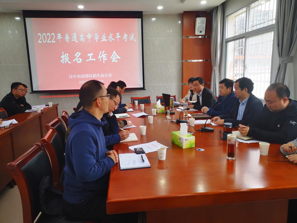 会议组织学习了汉中市南郑区招生办公室《关于做好2022年普通高中学业水平考试报名工作的通知》;对考生考籍变更、资格审查、报名操作流程以及注意事项等相关工作进行了专题培训;与会人员就报名工作有关问题进行了交流讨论。