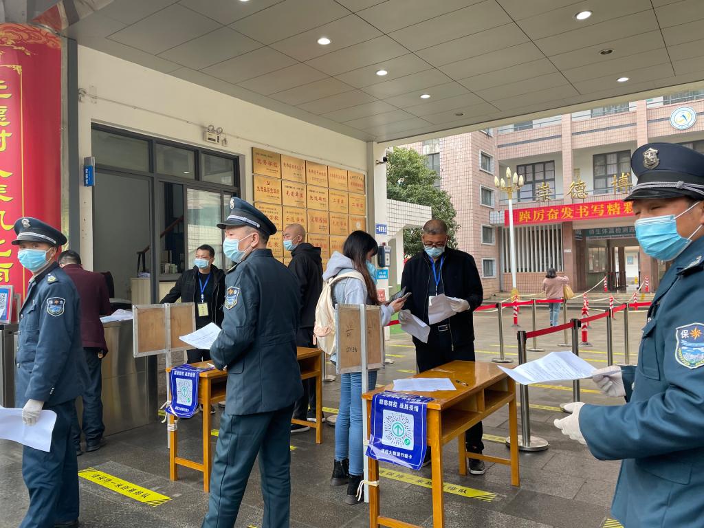 考点安保正在查验考生行程码、健康码和48小时核酸检测报告