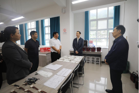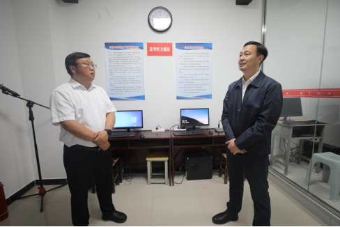 周富林一行先后来到宁陕中学考点考务办公室、外语听力播放室、视频监考室、试卷保密室等场所,详细了解考场布置、试卷保密、服务保障等情况。