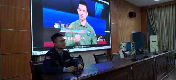 汉阴中学阶梯教室座无虚席,大家都在认真观看空军招飞宣传片,并不时做着笔记。