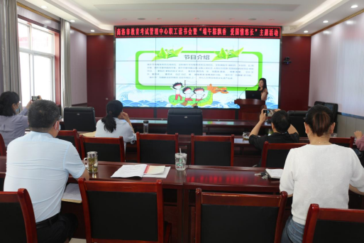 商洛市教育考试管理中心大门外滚动播放“喜迎二十大 浓情过端午”宣传标语,营造端午文化氛围,让全体干部职工感悟传统节日的美好精神内涵。大家一起重温端午节的来历、习俗和古诗词中的端午文化,诵读了经典爱国作品《端午的怀想》《永远跟党走》,在浓浓的爱国情怀中互送端午祝福。