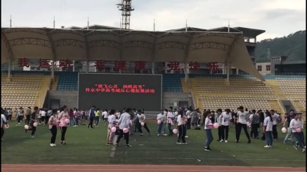 二、开展活动,释放压力。积极开展减压活动,所有考生分别组队进入赛场,“砰、砰、砰”,随着一声声气球爆炸的声音,操场上一片欢声笑语,学生们的压力也得到释放缓解。