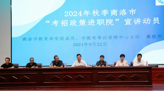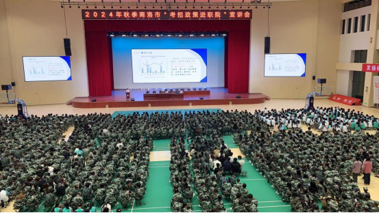 9月22日,商洛市教育考试管理中心宣讲团走进商洛职业技术学院,开展考试招生政策宣讲,2024级全体师生2500多人身穿军训服装,列队参加听取了本次宣讲活动。