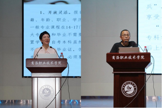 资格证书是专业技能素质的凭证,更是特定领域求职不可或缺的敲门砖。宣讲团成员深度剖析了教师资格证书、计算机等级证书在职业发展中的重要作用,重点对每年考试次数、报考条件、考试内容以及诚信考试进行了详细讲解。商洛学院继续教育学院开展了招生宣传,对商洛职院专科专业可以报考商洛学院的统考专升本和成人高考本科专业作了细致介绍,让学生们有了更清晰的学业规划。