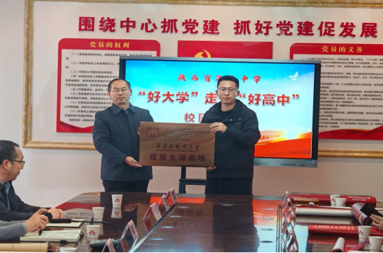 活动中,高校还向洛南中学授予“优质生源基地”牌匾,赠送录取喜报