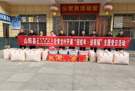 年关临近,商洛市山阳县考试管理中心、山阳县青少年体校、山阳县青少年活动中心深入包扶的山阳县户垣镇黄龙村开展“迎蛇年、送祝福”活动,为帮扶的群众送去了节日的慰问和新春的祝福,及时把党和政府的温暖和关怀送给生活困难群众,让他们过上一个祥和、喜庆、欢乐的新春佳节。