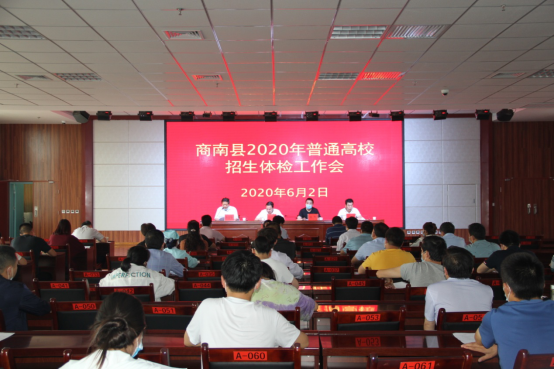 6月2日下午, 商洛 商南县 召开2020年 高考体检 工作会议,扎实安排部署2020年高考体检工作 。 商南 县科教体局局长、县医院分管业务院长、考试管理中心负责人、相关学校业务校长和带队教师及全体体检医务工作人员参加了会议。