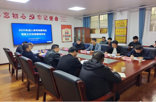 10月10日,宝鸡市凤翔区召开2025年成人高考考务工作安排暨培训会。凤翔区教体局党组成员赵爱武,监察室主任肖元,各考点主考、副主考、考务组长参加会议,会议由凤翔区考管中心主任张春哲主持。