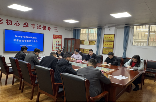 3月2日,宝鸡市凤翔区召开2026年高中学考合格考报名工作会,凤翔区各高职中学校主管学考合格考副校长、教务主任、学考业务主管及区考试管理中心全体人员参加会议。会议由凤翔区考试管理中心副主任虎小龙主持。