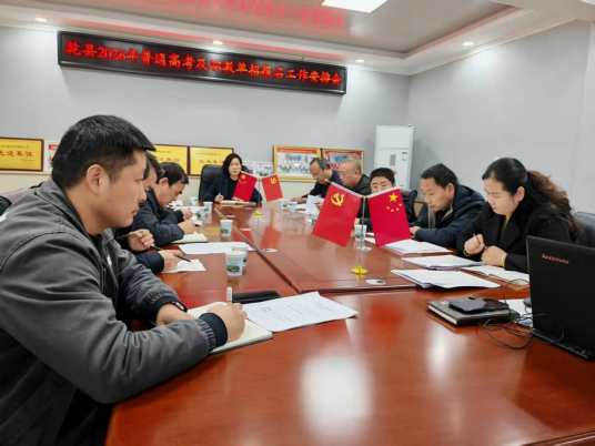 为切实做好2026年普通高考及单招考试报名工作,确保报名工作规范、有序、高效开展,10月27日下午咸阳市乾县召开了2026年普通高考及单招考试报名工作安排会。参加会议的有招生办领导、高考组同志、信息室同志、各高职中高三年级组领导及学校相关同志。