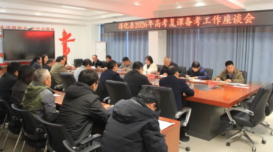 为扎实推进2026年全县高三复课备考工作,切实提高复课备考的针对性与实效性,12月30日下午,咸阳市淳化县2026年高考复课备考工作座谈会在淳化中学行政会议室召开。县政府党组成员刘继宁参加会议并讲话。县教育局分管领导、县教学研究与教师培训中心及相关股室负责人,淳化中学全体班子成员、年级部主任、教研组长和高三年级任课教师代表等参加会议。县教育局党委书记、局长任军辉主持会议。