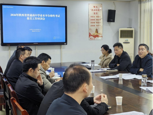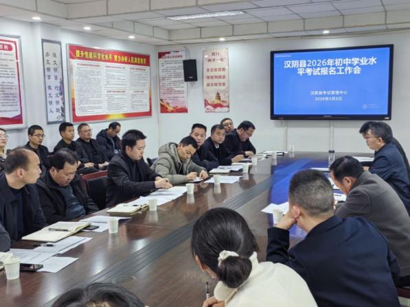 日前,汉阴县召开2026年陕西省普通高中学业水平合格性考试暨2026年安康市初中学业水平考试报名工作培训会,重点安排两项考试报名工作,并对高考、学考、中考后续工作进行部署。县考试管理中心全体成员,各中学分管教学副校长、考务员等30余人参加会议。