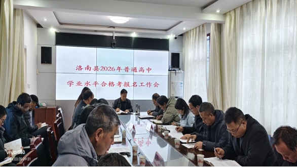 会议学习了《洛南县考试管理中心关于做好2026年陕西省普通高中学业水平合格性考试报名工作的通知》,就2026年外省迁入洛南县考生合格考成绩转入、残疾考生申请合理便利、高职分类招生政策宣传等近期工作进行了扎实安排,并就合格考信息采集进行了专题培训。